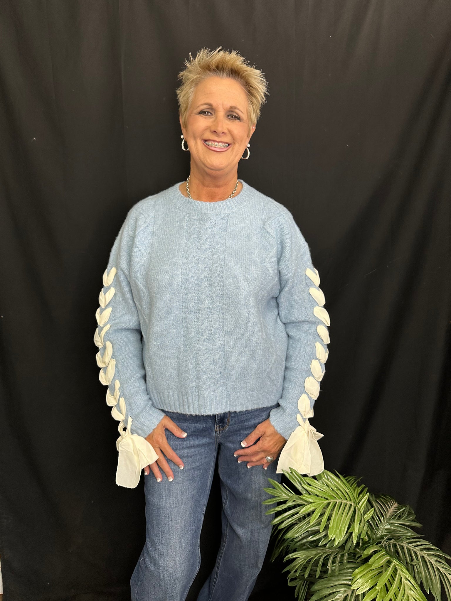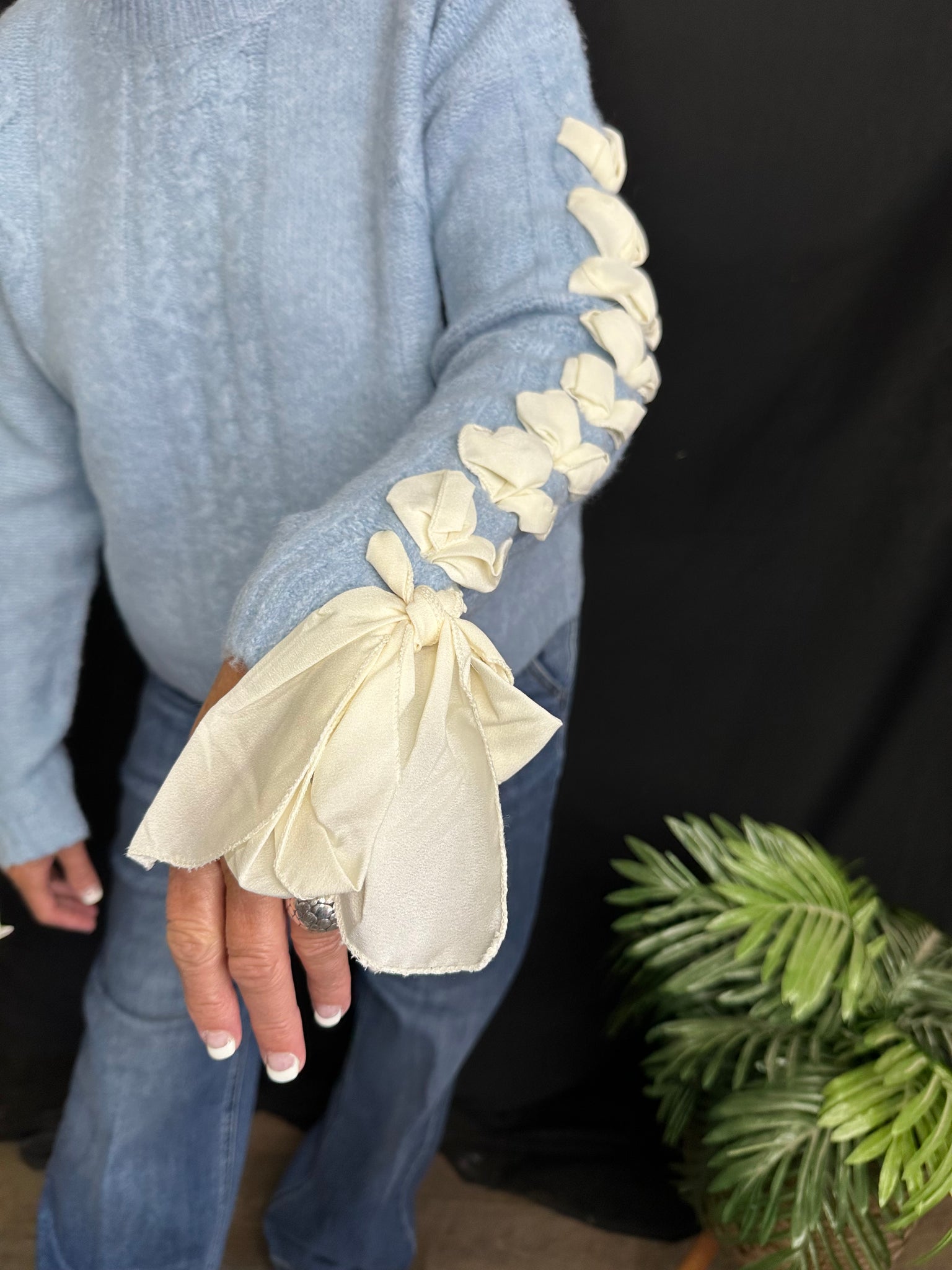 • Load image into Gallery viewer, Baby Blue Ribbon Sleeve Sweater