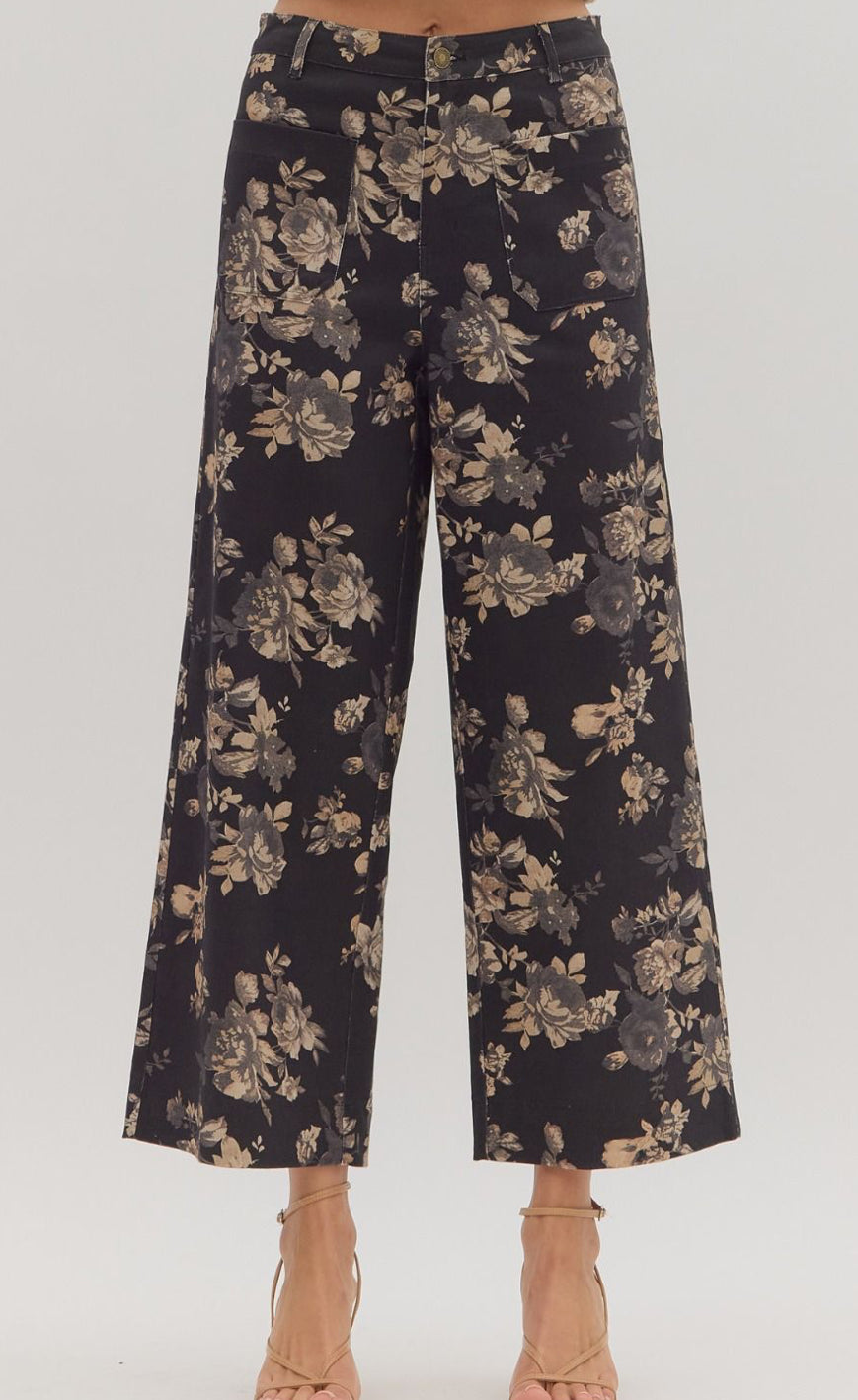 Floral pattern mid-rise ankle-length pants. Button zip-fly closure at front. Patch pockets at front and back. Unlined. Woven. Non-sheer.95%COTTON 5%SPANDEX