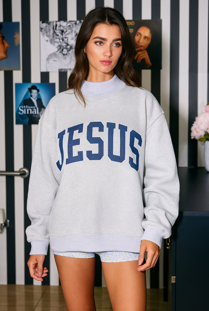 'JESUS & GOD IS GOOD' Print Reversible Mock Neck Sweatshirt