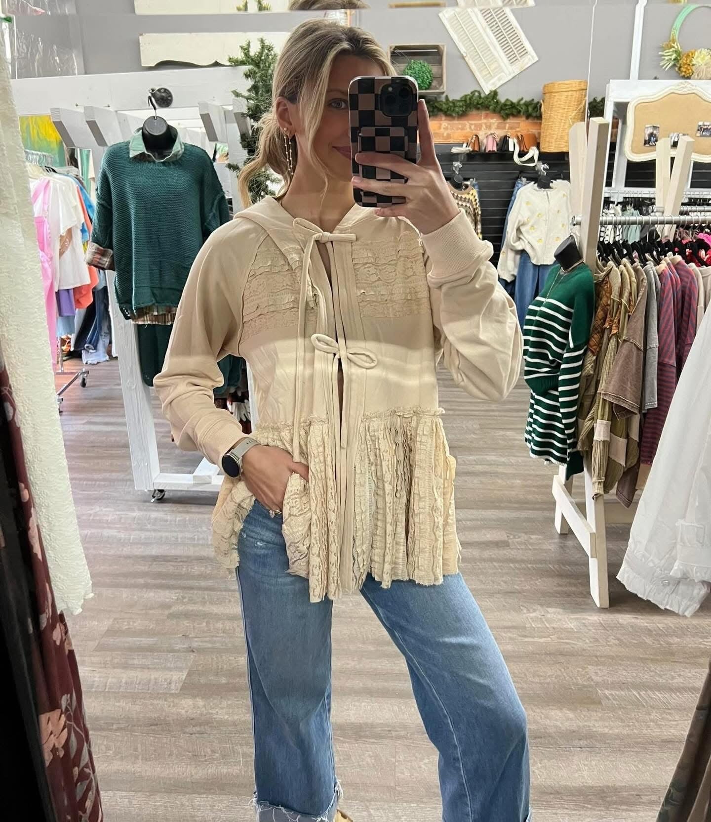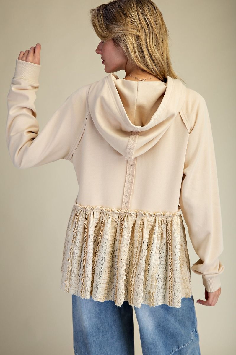 Description: LACE MIX SOFT WASHED TERRY KNIT JACKET