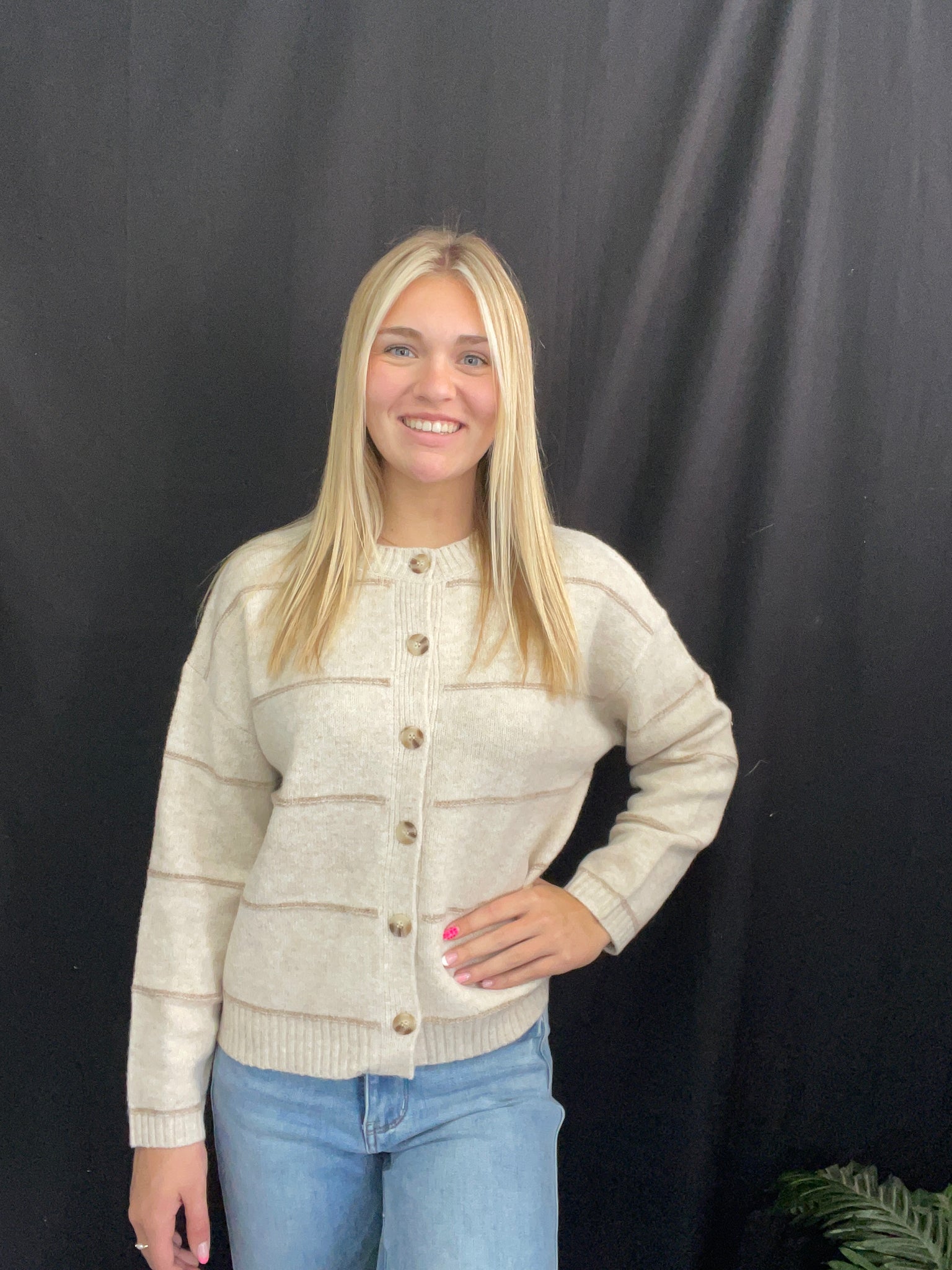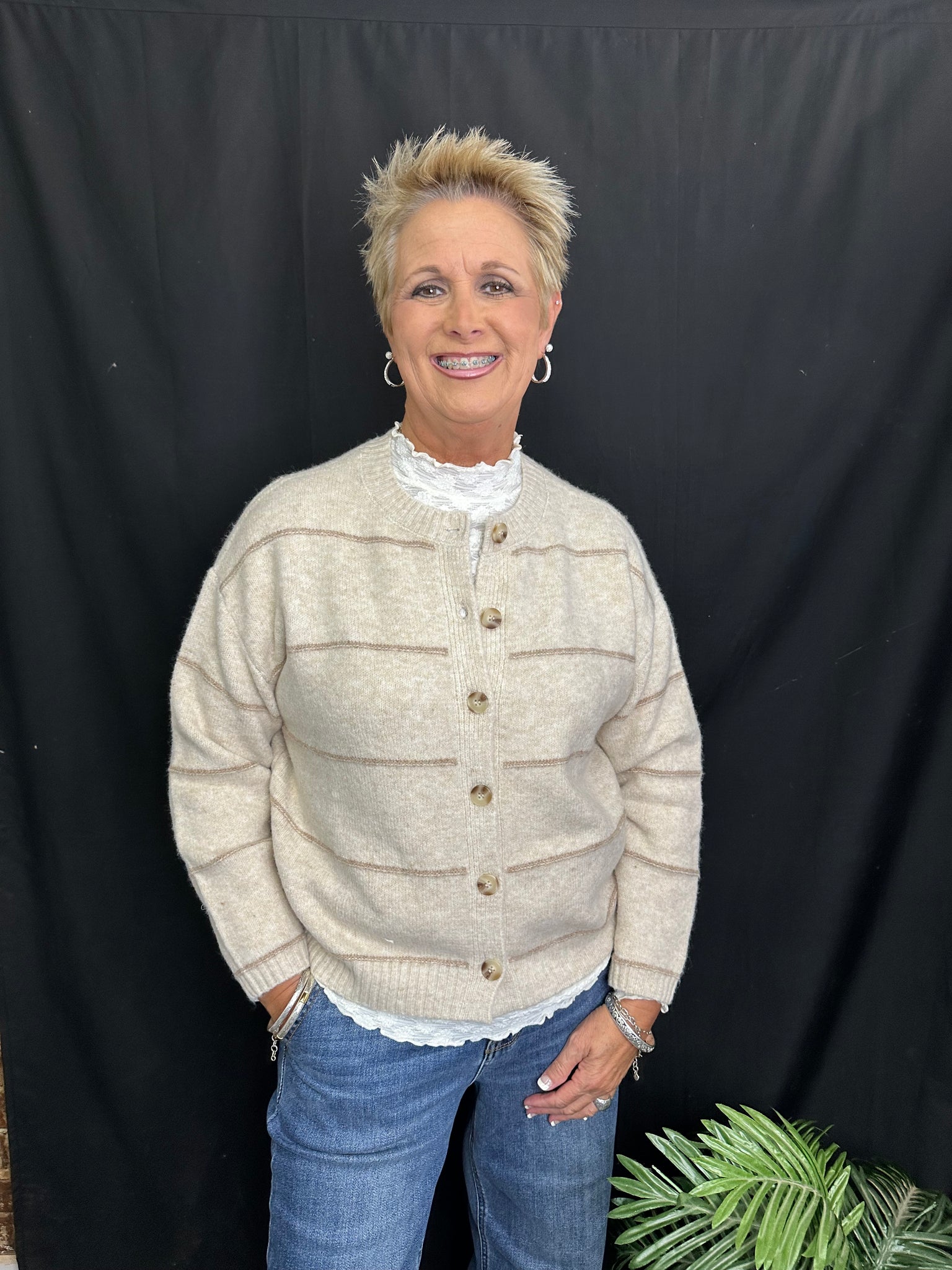 • Load image into Gallery viewer, Striped Oatmeal Button Sweater