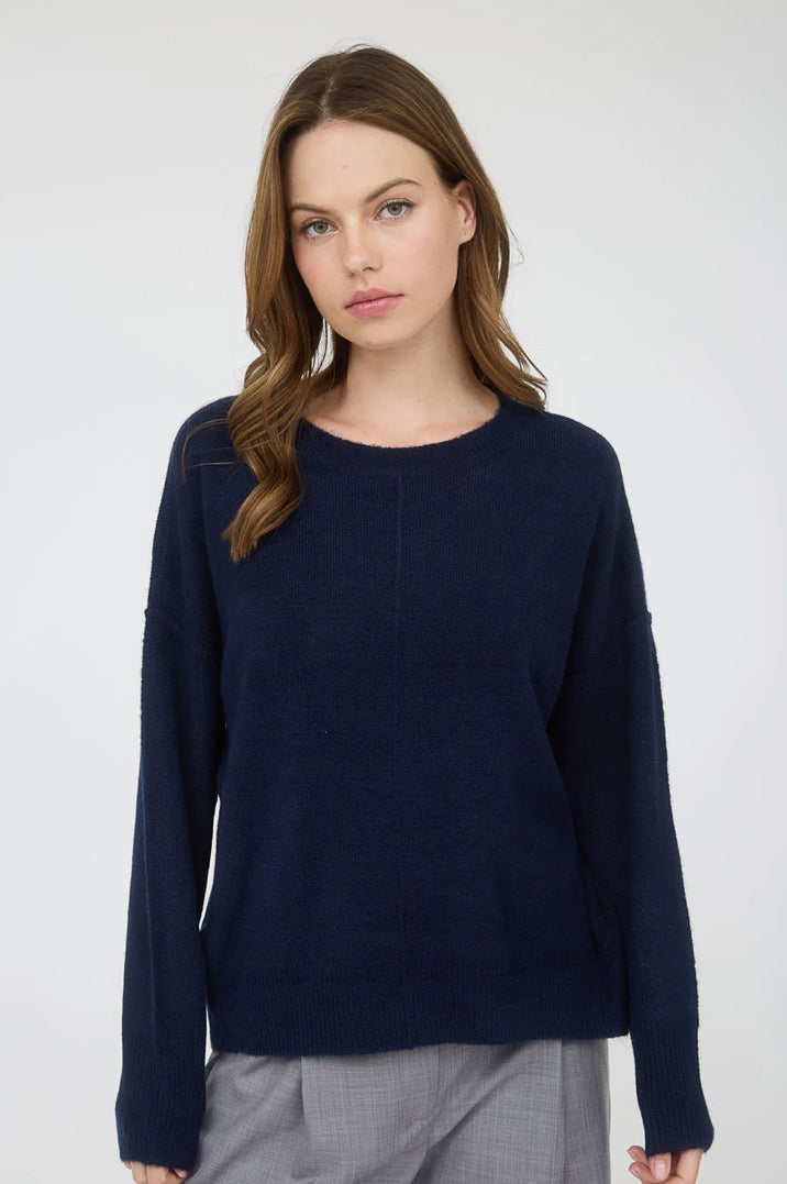 CREWNECK LONG SLEEVES FRONT SEAM DETAIL SOLID PULLOVER KNIT SWEATER SWEATSHIRT 65% ACRYLIC, 30%POLYESTER, 5%SPANDEX