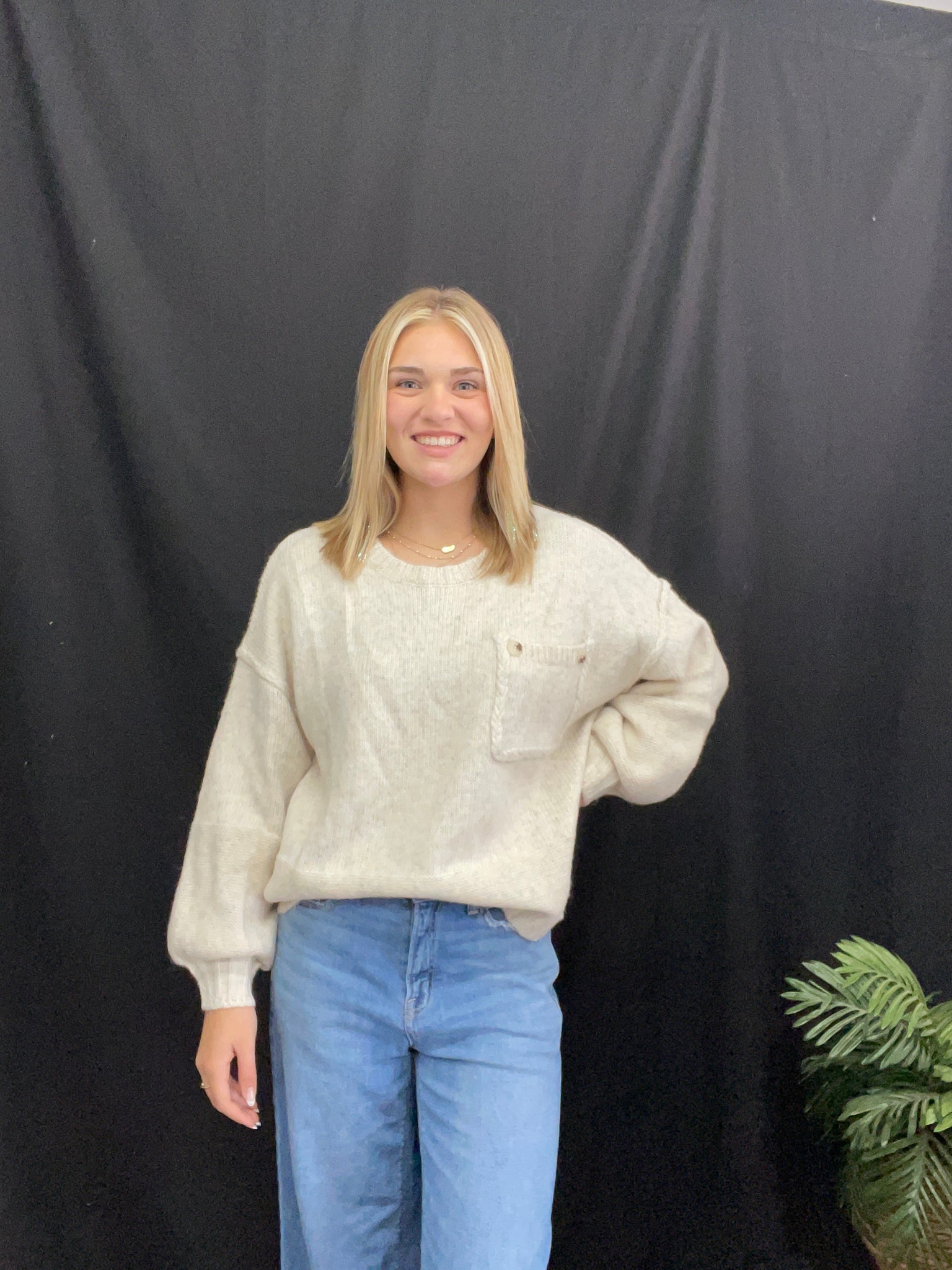 Oatmeal Knit Pocket Front Sweater