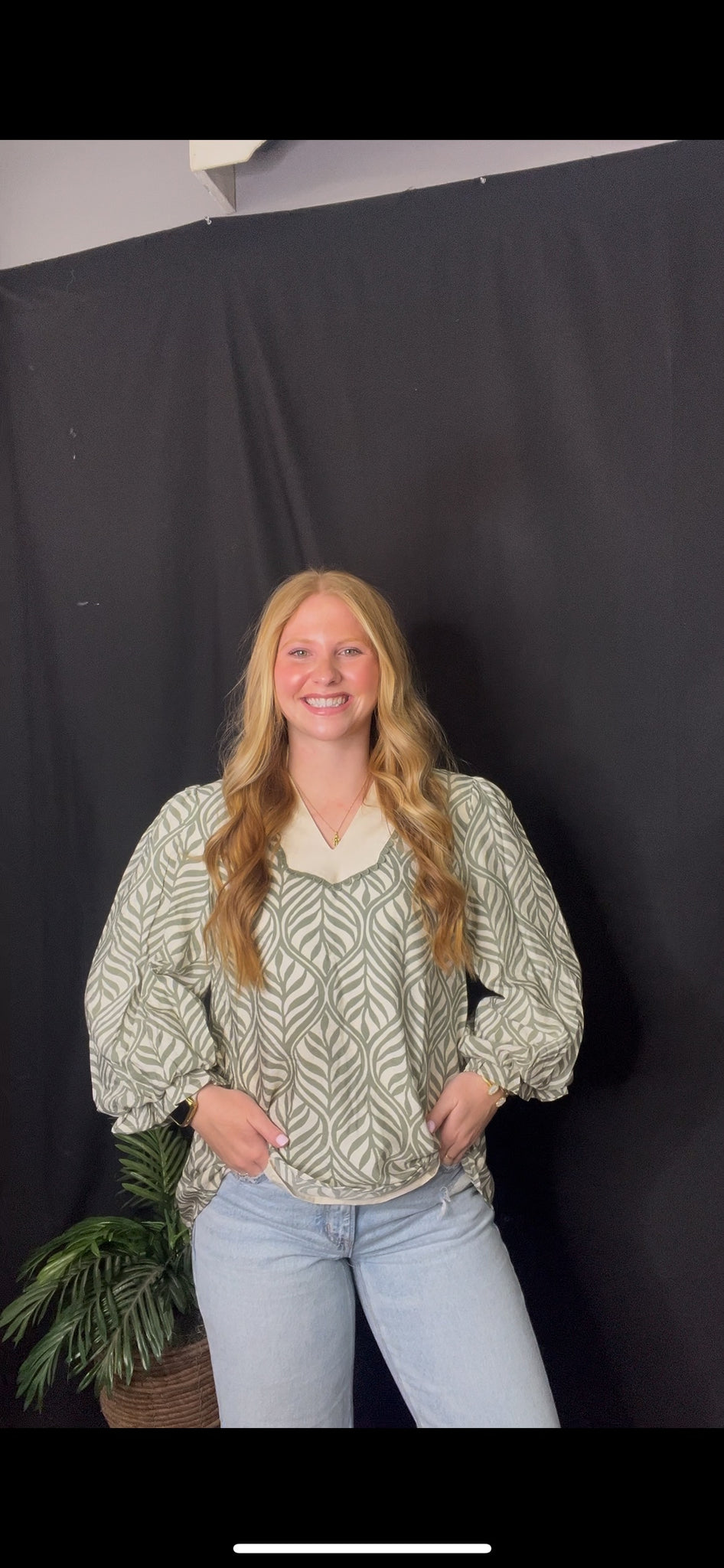 Sage Boho Leaf Print Top