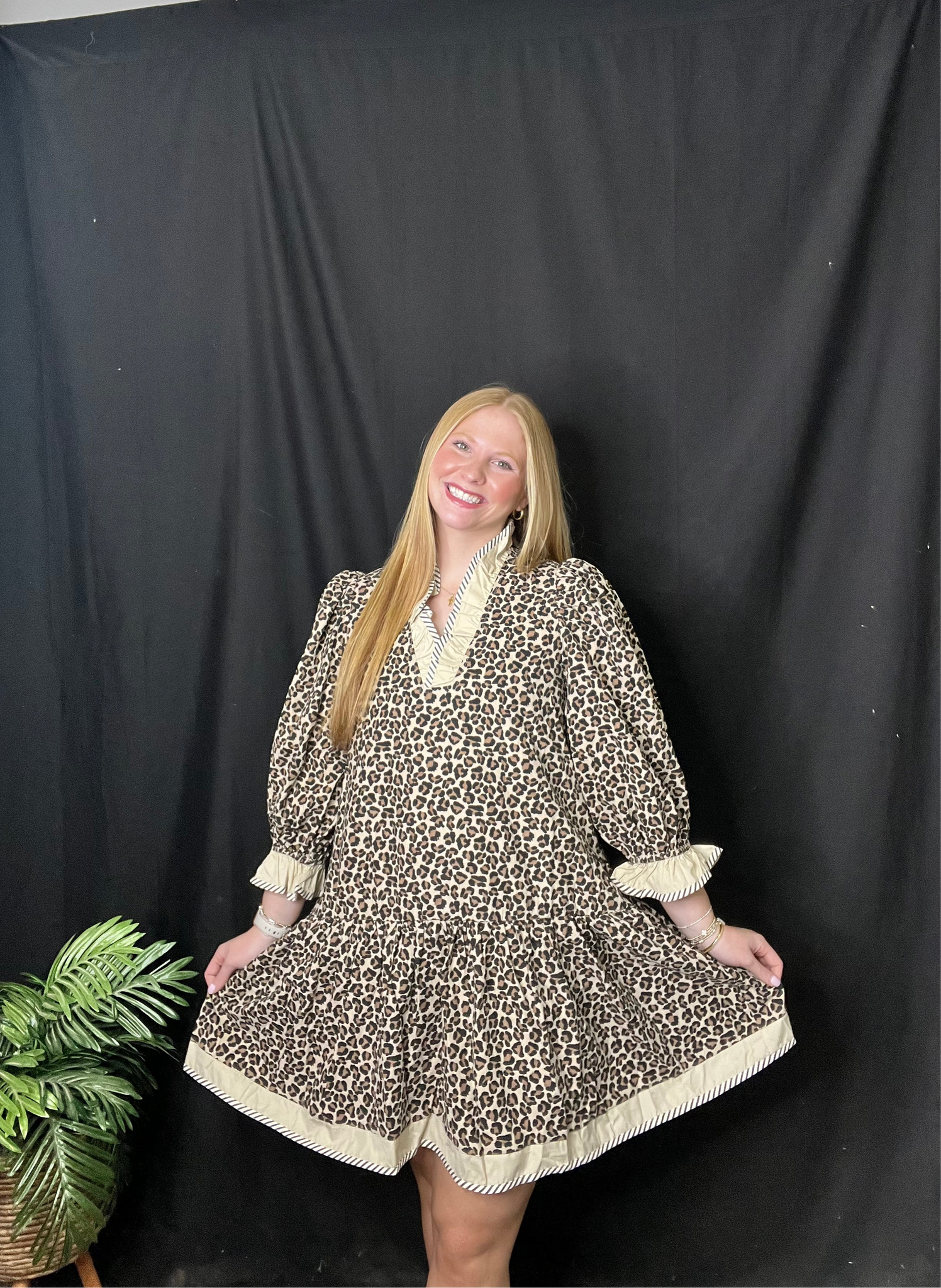 Taupe Leopard Print Long Sleeve Dress